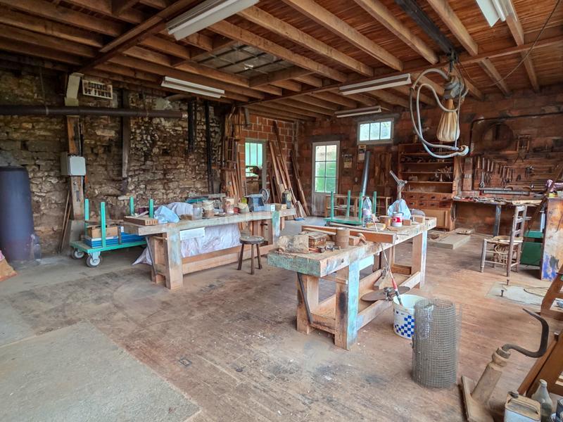 Bel atelier attenant à la maison composé de deux grandes pièces de 67 m² et 74 m², un hangar avec une dépendance communiquant avec la cuisine. En face de la maison grand hangar d’environ 136 m² avec garage et ensemble de trois petites dépendances d’environ 10m² chacune attenantes à la maison.
