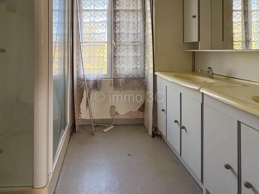 A l’étage : palier desservant 3 belles chambres de 26.5, 13.6 et 13m2 et une salle d’eau avec WC.