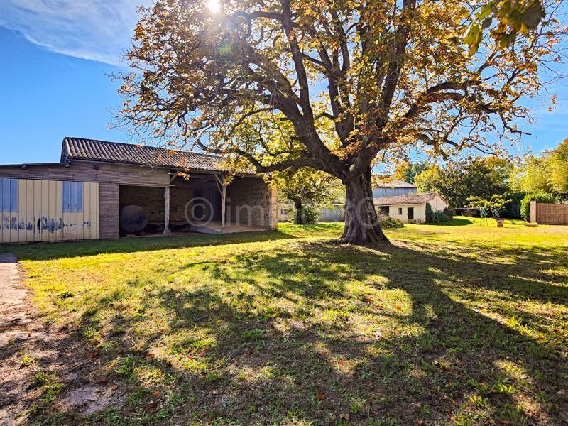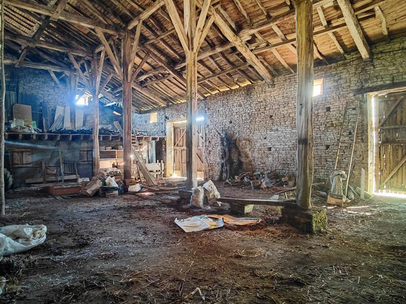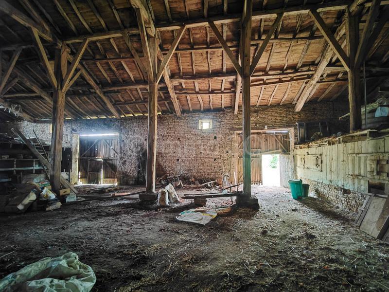 An old house to renovate, adjoining the main home, includes a 28 m² room with stone floors and a fireplace, an attic above, and connects to the main house through a 13 m² wine cellar. A large adjoining barn of 196 m², whose roof was completely renewed in 2024, is accompanied by three former stables (32 m², 36 m², and 45 m²) and a 30 m² workshop.